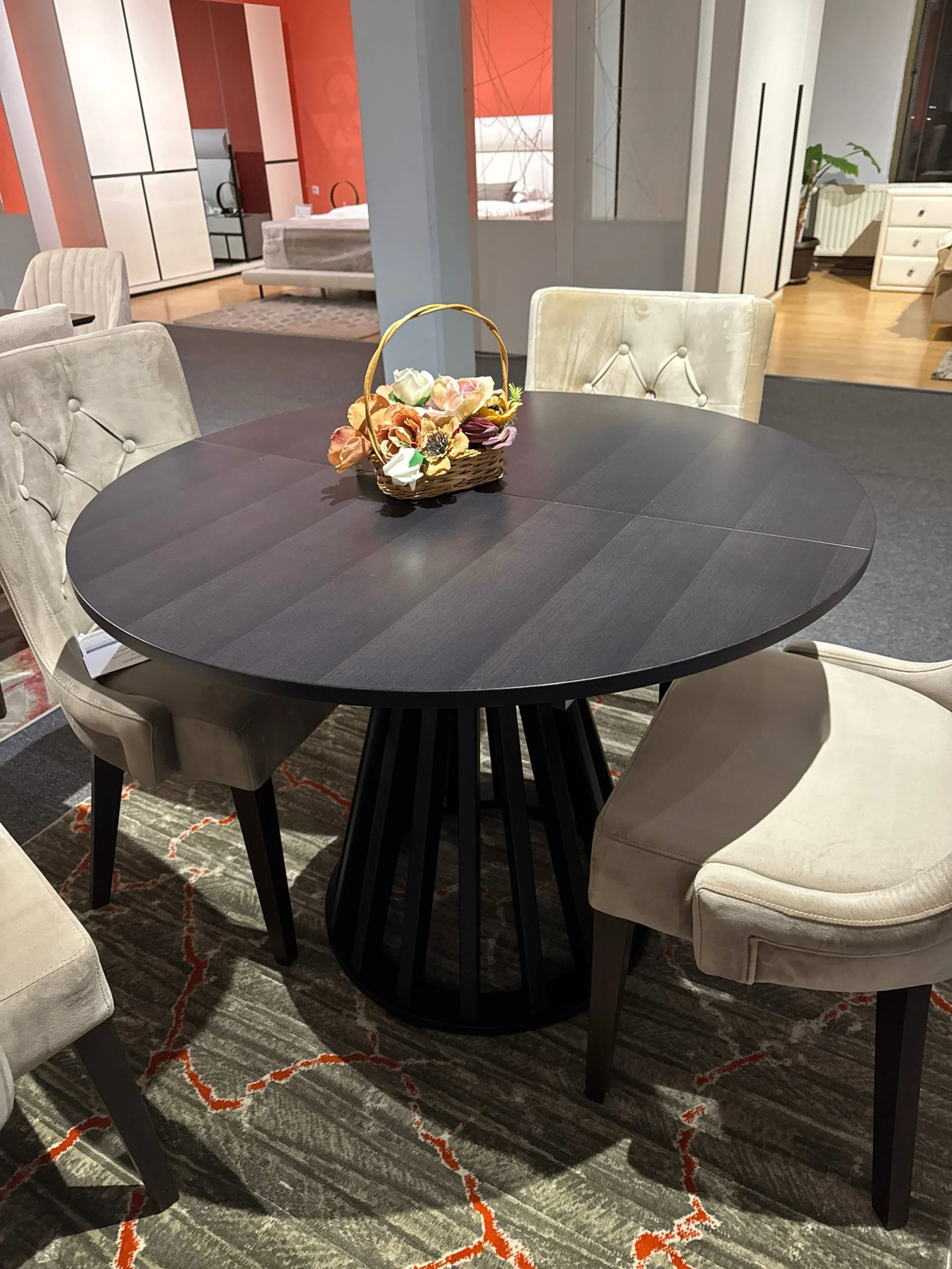 Trpezarijski sto Rodos sa produžetkom izrađen od MDF-a. Dimenzija 100 cm, razvlači se na 140 cm za prilagodljiv prostor. Praktično rešenje za manje trpezarije koje povremeno zahtevaju više mesta.